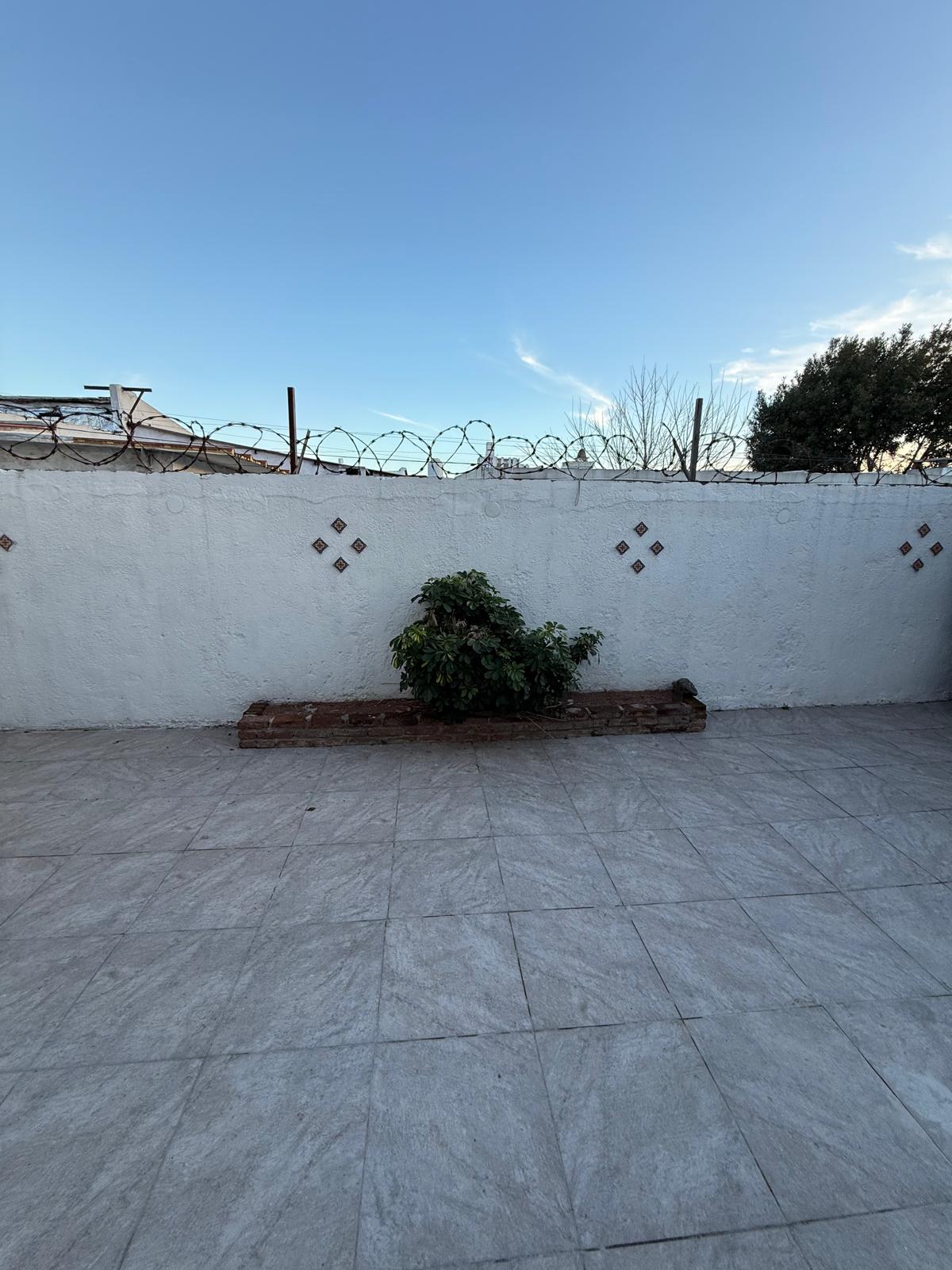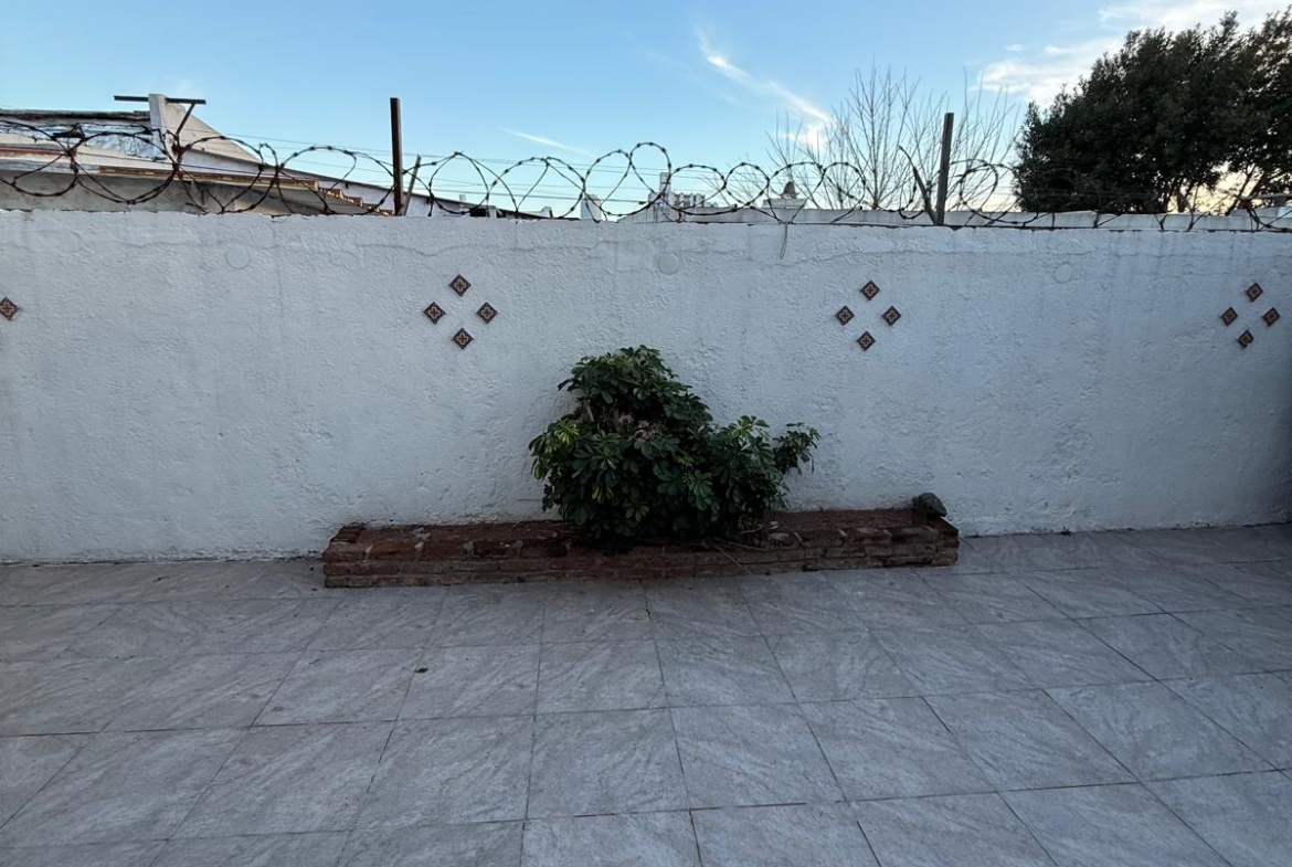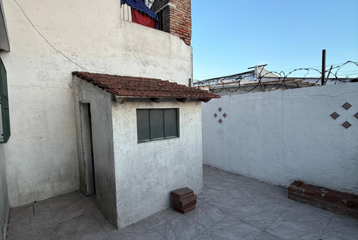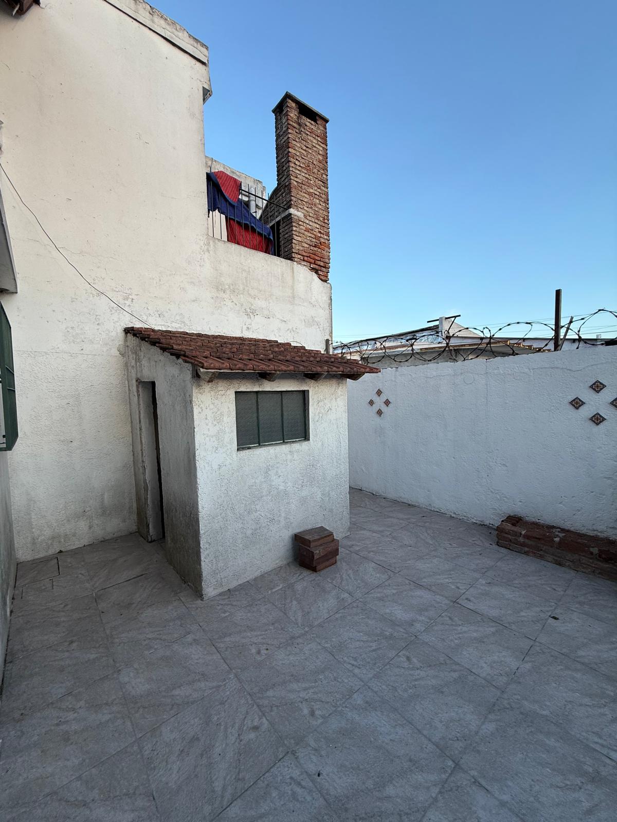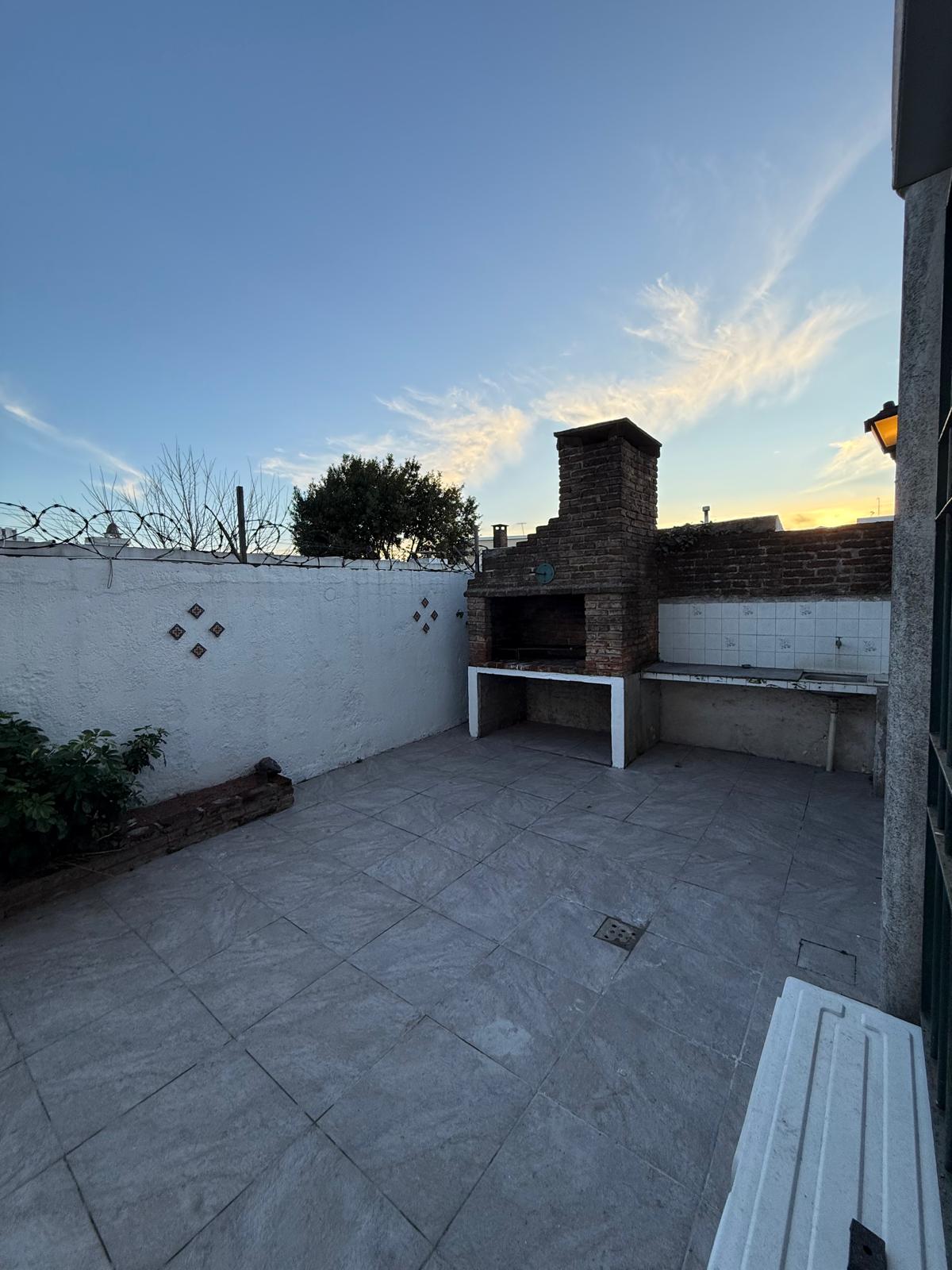 Patio con parrillero y galpón.
